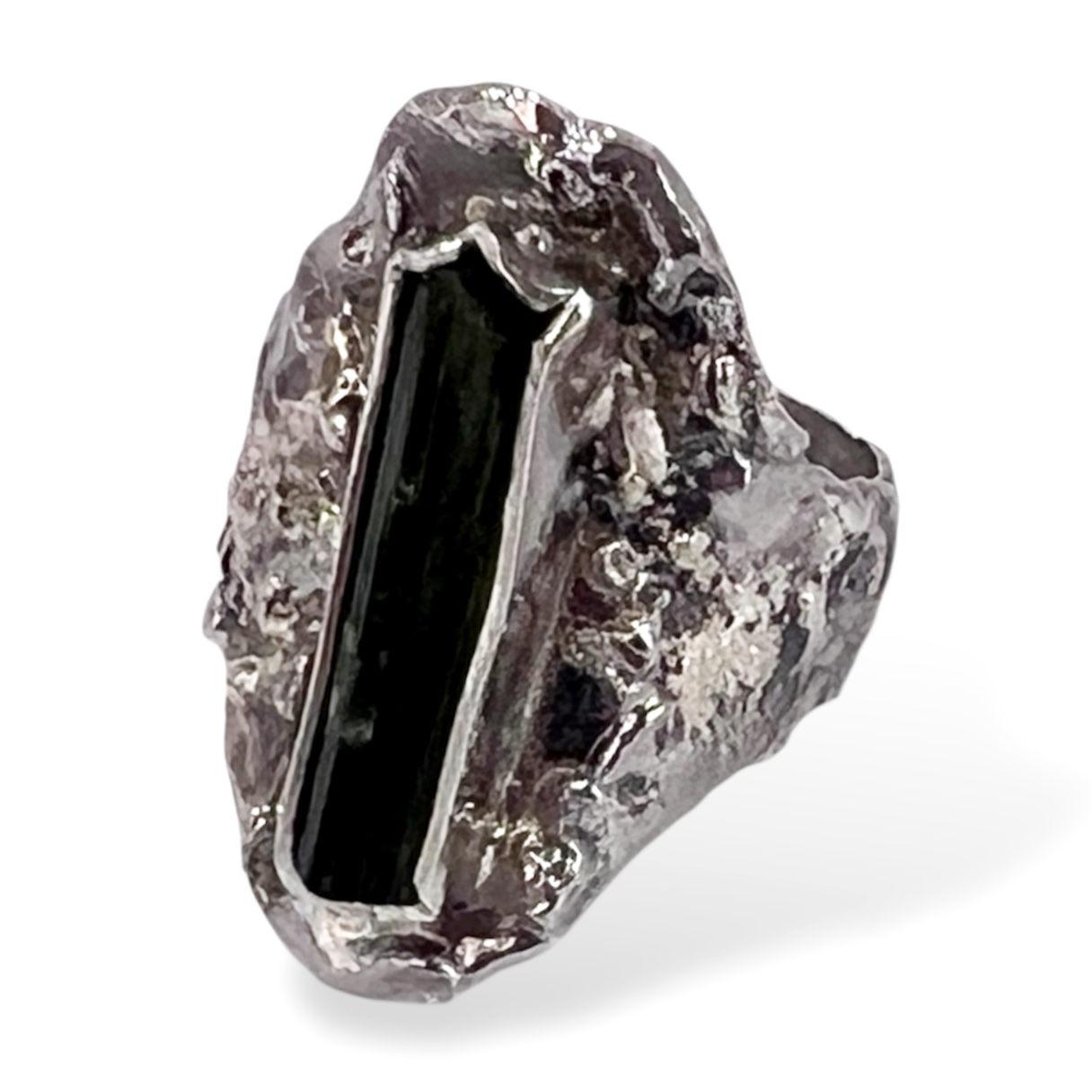 Anillo de Plata con Turmalina Verde. Medida 9.
