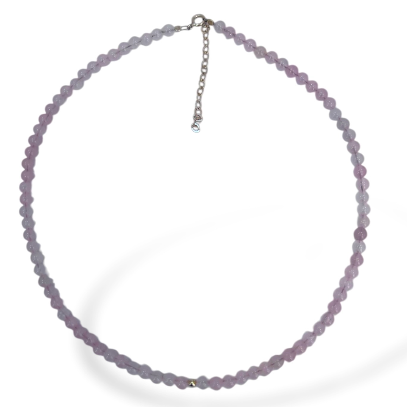 Collar de cuentas de Cuarzo Rosa y Plata. Medida 45 cm.