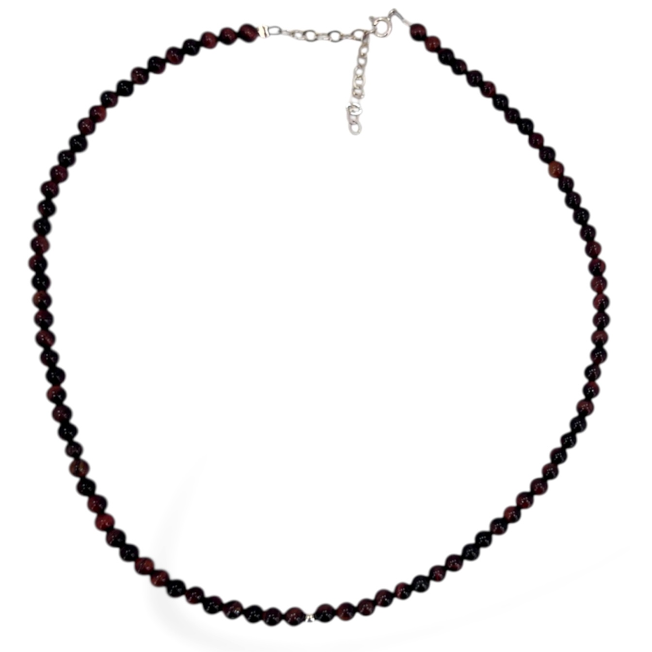 Collar de cuentas de Ojo de Buey y Plata. Medida 45 cm.