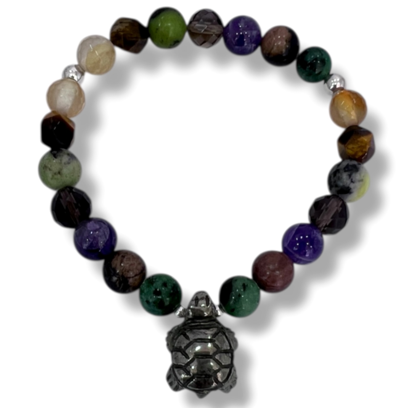 Pulsera 7 Piedras con dije de Tortuga de Pirita y Plata.