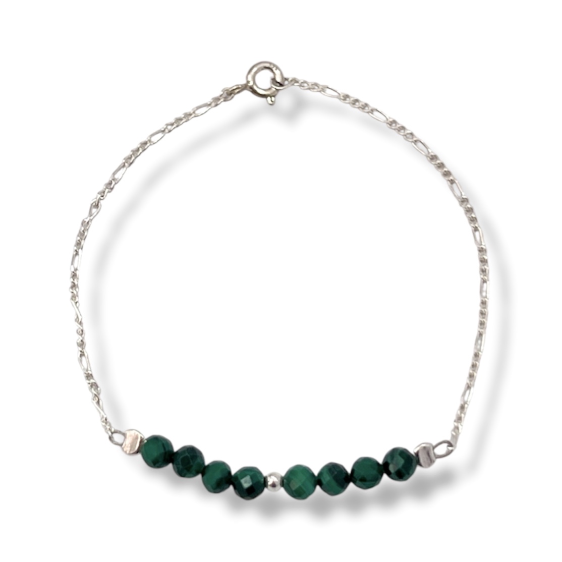 Pulsera de Plata y cuentas de Malaquita.