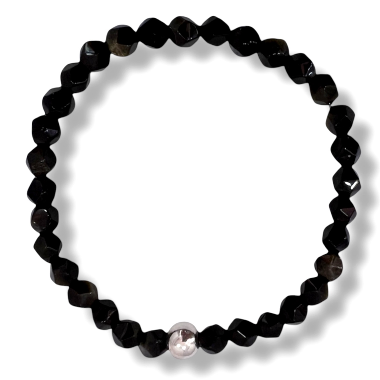 Pulsera de cuentas de Obsidiana destello dorado y Plata.