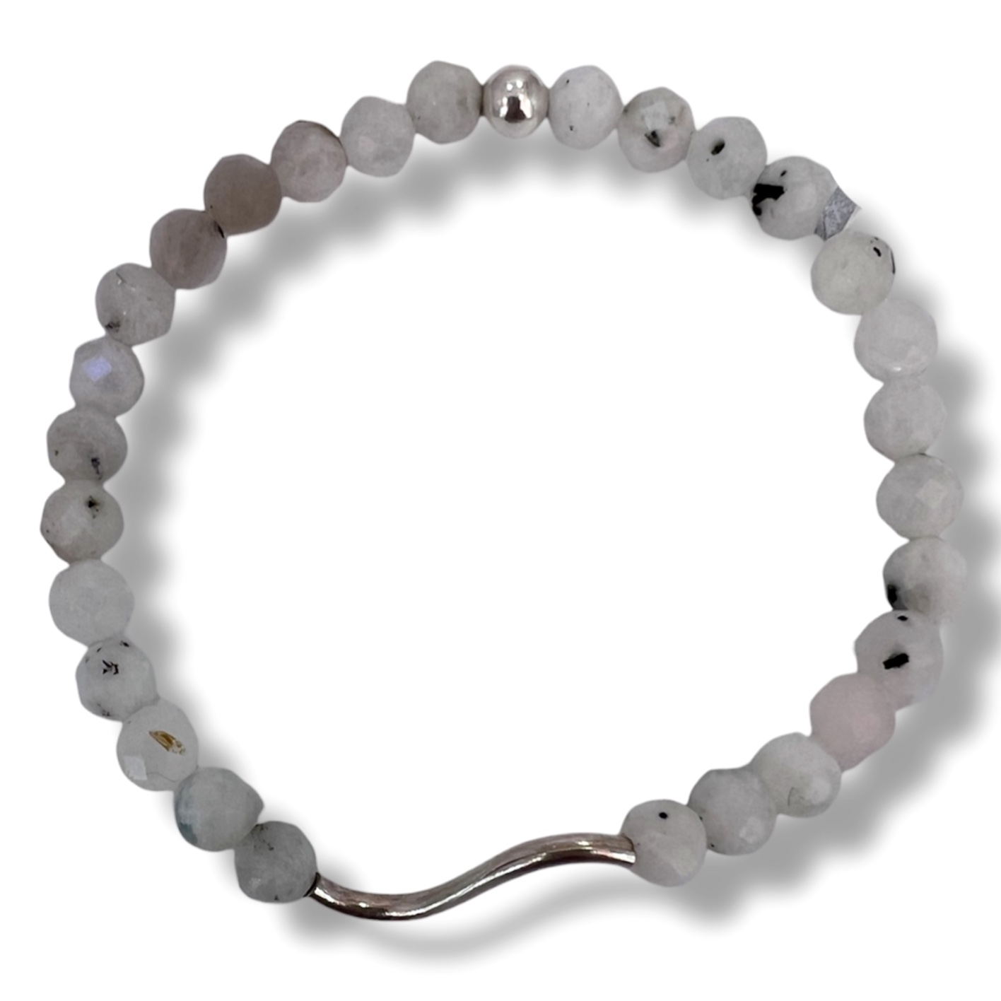 Pulsera de cuentas facetadas de Piedra Luna y Plata.