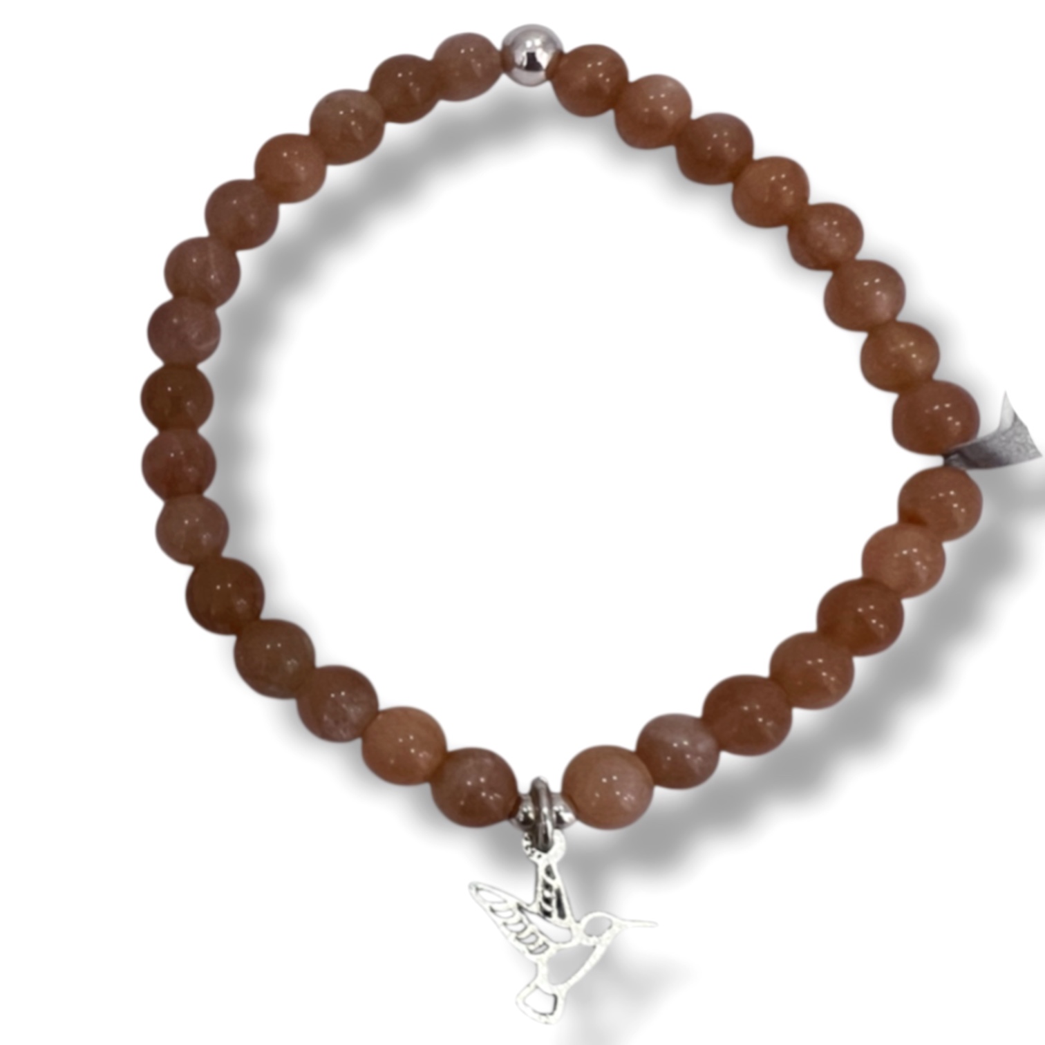 Pulsera de cuentas de Rosa del Desierto con dije de Colibrí de Plata.