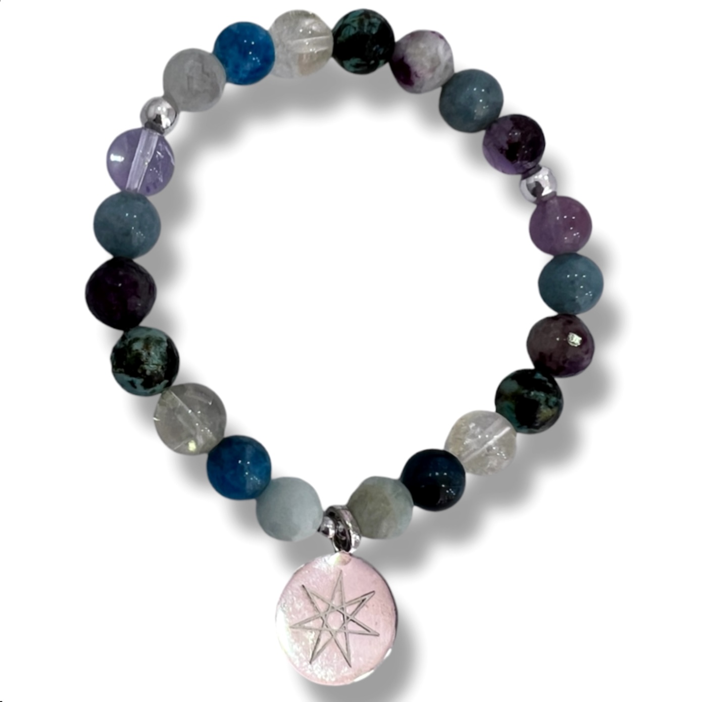 Pulsera 7 piedras con dije de Estrella de 7 Puntas de Plata.